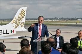 Participación del secretario Marcelo Ebrard durante la entrega del certificado de aprobación a la aeronave HORIZONTEC